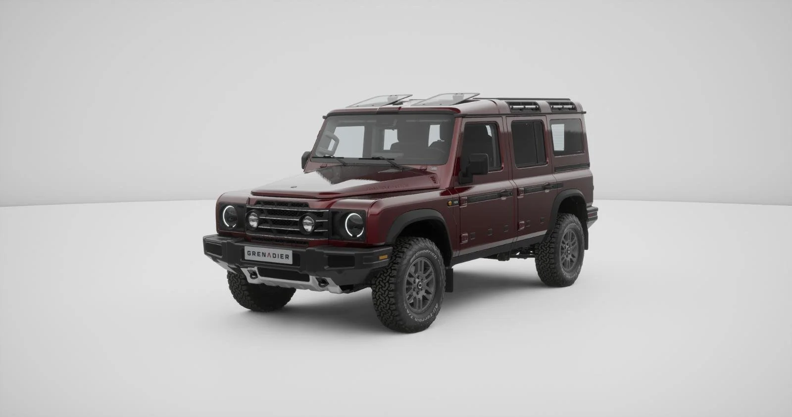 This new 2025 INEOS Grenadier (standard trim) is finished in Queens Red Metallic with a Grey/Black fabric interior.