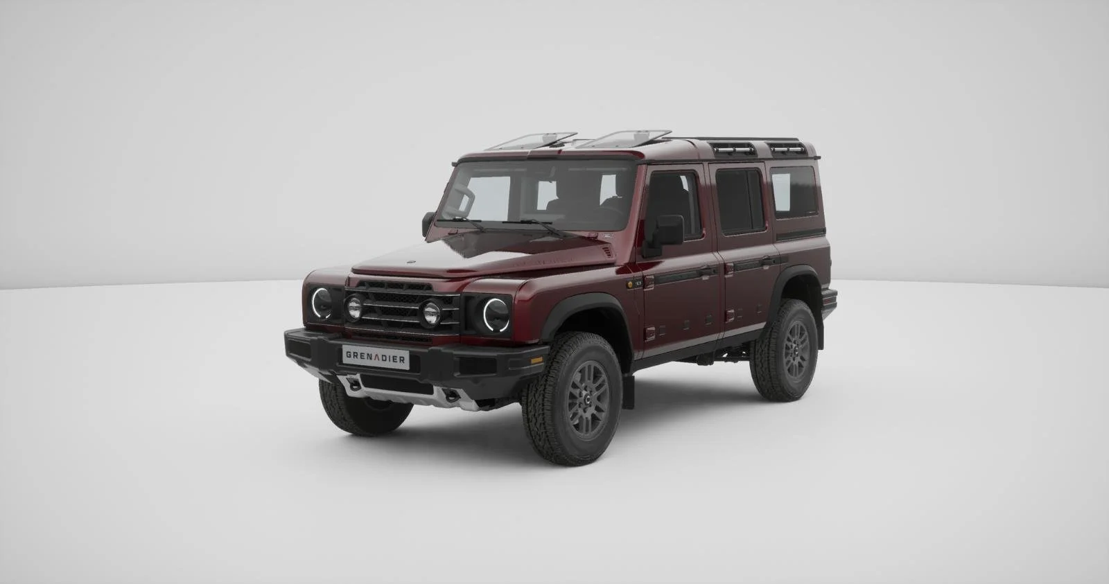 This new 2026 INEOS Grenadier Station Wagon (standard trim) is finished in Queens Red Metallic with a grey/black fabric interior.